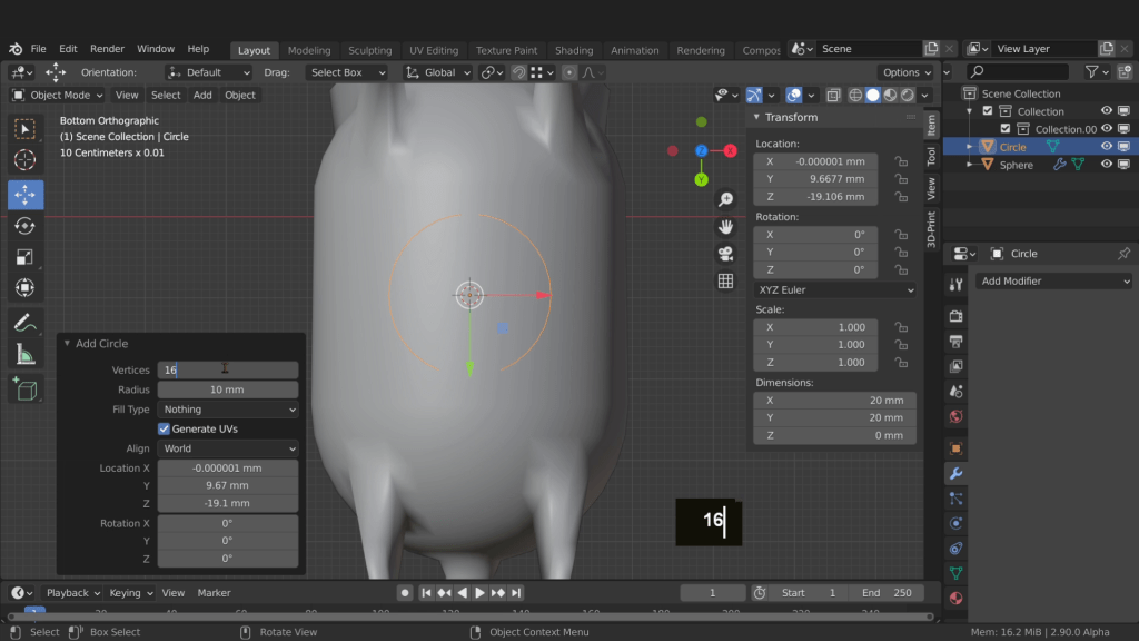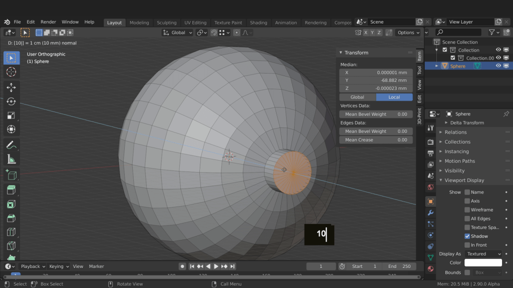 Right click to exit circle select. Now press E, input 10 and press enter to confirm.