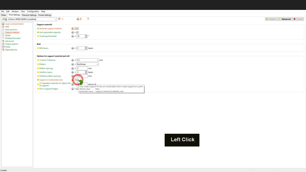 Also check on support on the build plate only. That way no support material should be placed inside the model. They are the only changes we need to make.