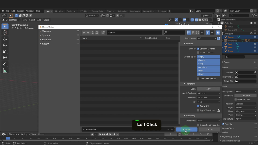 I can name this Arch_house and click export fbx. We are ready to launch Twinmotion. This will take a moment to load. When it does I’m in the default scene.