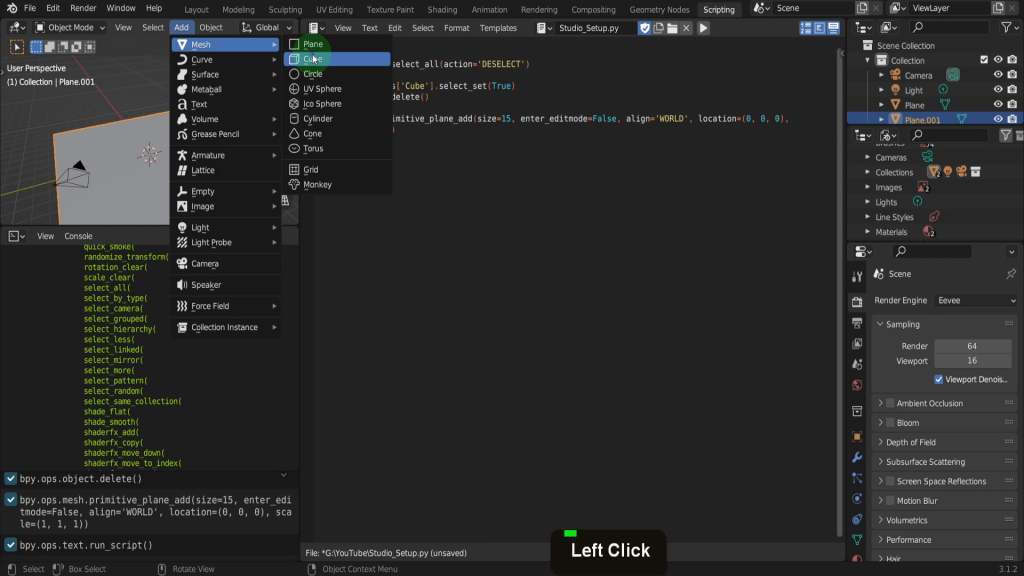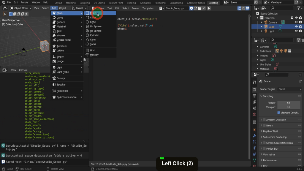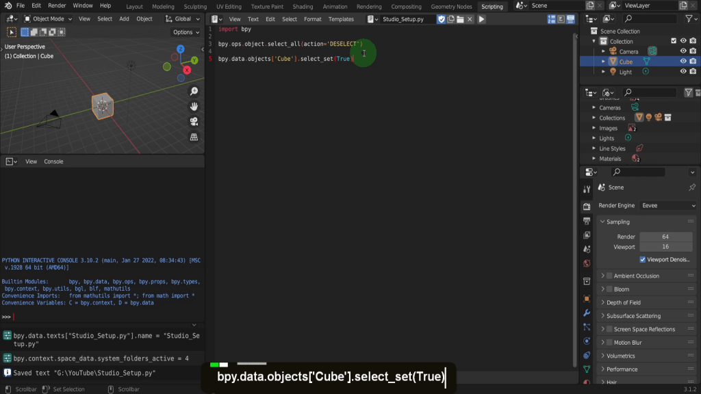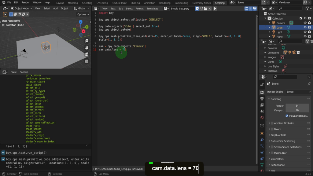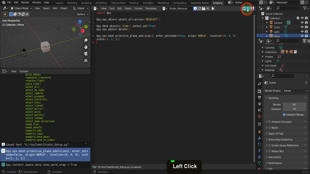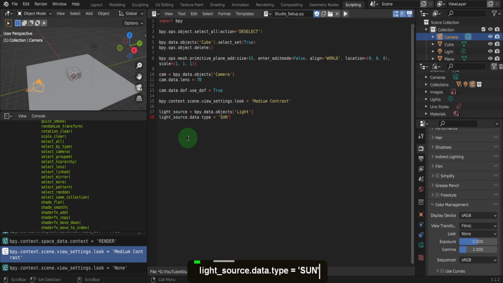 In this post I demonstrate how to access and change the settings of objects in Blender including the scene, light and camera while also swapping out the default cube for a plane. Having custom Python scripts can be useful and learning it in Blender a fun process.