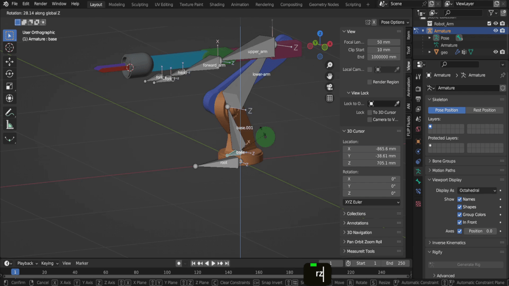 In this post we’ll be rigging & animating a robot arm asset in Blender. You’ll find the robot arm demo file here, if you’d like to follow along. The post is also available as a video tutorial. Check out my character Modelling & Rigging course on Udemy for more indepth training.